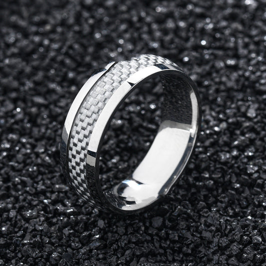 Titanium ring with drop in carbon fiber inlay